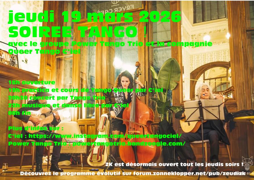 dans le cadre des ZeudiZK ! + d’infos : forum.zonneklopper.net/pub/zeudizk